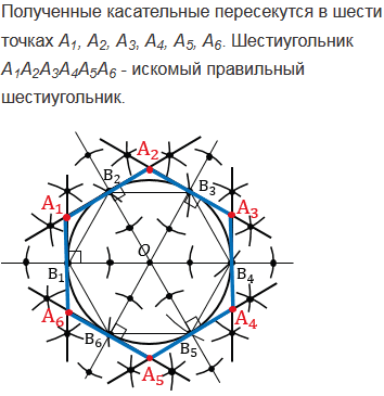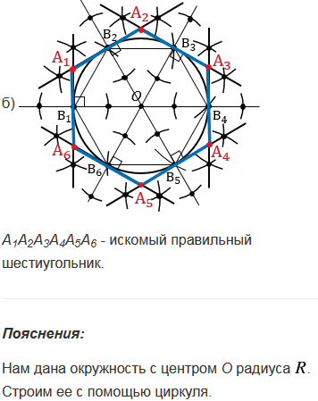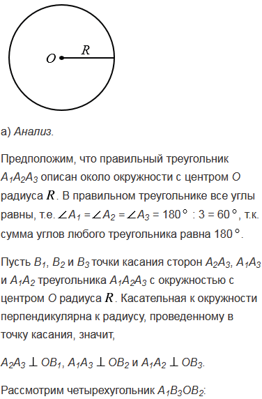 Около данной окружности опишите: а) правильный треугольник; б) правильный шестиугольник.