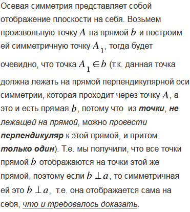 б) прямая перпендикулярная к оси симметрии, отображается на себя.