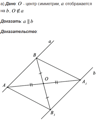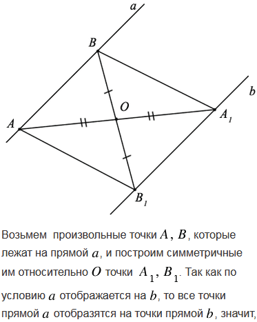 а) прямая, не проходящая через центр симметрии, отображается на параллельную ей прямую;