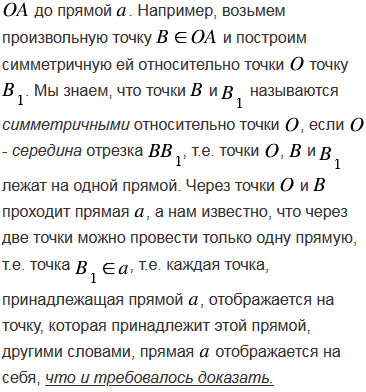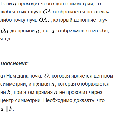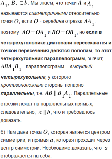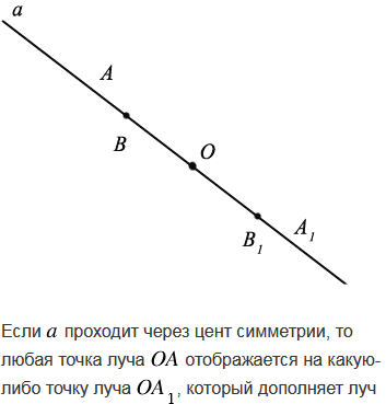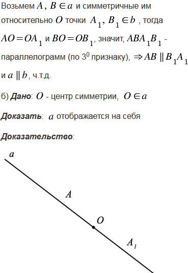 б) прямая, проходящая через центр симметрии, отображается на себя.