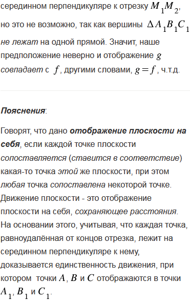 АВС и А1В1С1 - произвольные треугольники. Докажите, что существует не более одного движения, при котором точки А, В и С отображаются в точки А1, В1 и С1.