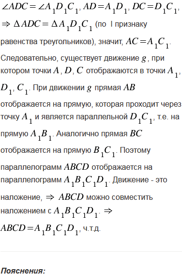 Докажите, что два параллелограмма равны, если смежные стороны и углы между ними одного параллелограмма соответственно равны смежным сторонам и углу между ними другого параллелограмма.