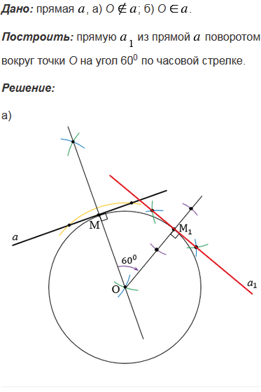 поворотом вокруг точки О на угол 600 по часовой стрелке, если прямая