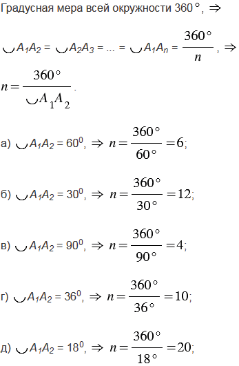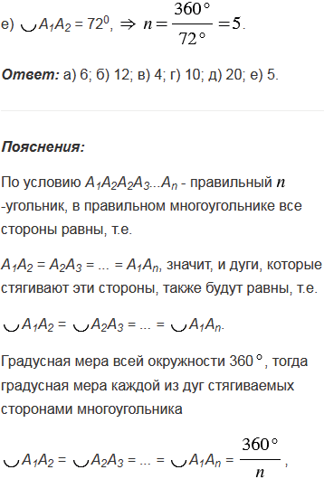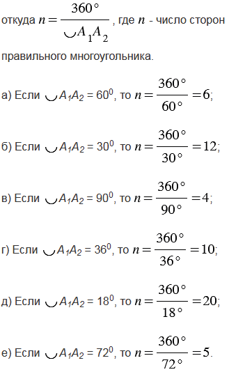 Сколько сторон имеет правильный вписанный многоугольник, если дуга описанной окружности, которую стягивает его сторона, равна: