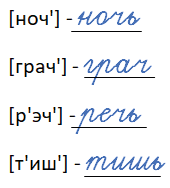 [ноч’] – ночь ложь - [лош]