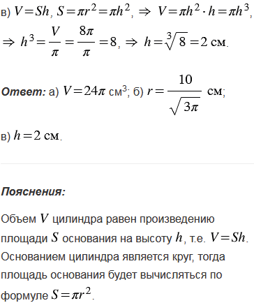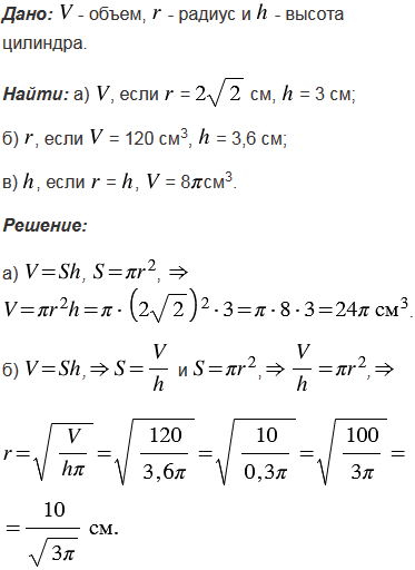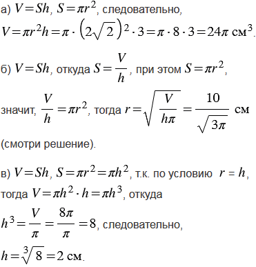 см, h = 3 см; б) r, если V = 120 см3, h = 3,6 см; в) h, если r = h, V = 8