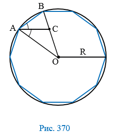 На рисунке 370 изображен правильный десятиугольник, вписанный в окружность радиуса