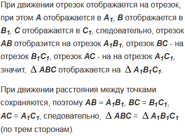 Докажите, что при движении треугольник отображается на равный ему треугольник.