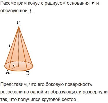 Объясните, как получается и что представляет собой развертка боковой поверхности конуса.