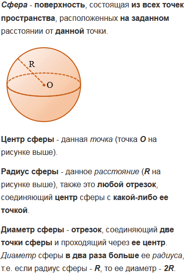 Что называется сферой и что такое ее центр, радиус и диаметр?