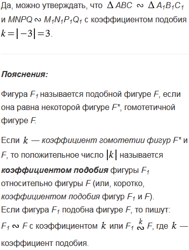 = –3 треугольник АВС переходит в треугольник А1В1С1, а параллелограмм MNPQ — в параллелограмм M1N1P1Q1. Можно ли утверждать, что