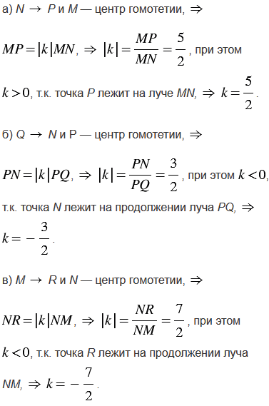 гомотетии, если известно, что: а) точка N переходит в точку P и M — центр гомотетии; б) точка Q переходит в точку N и P — центр гомотетии; в) точка M переходит в точку R и N — центр гомотетии; г) точка M переходит в точку Q и R — центр гомотетии.