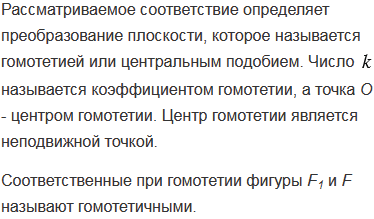 Вспомните, что называют гомотетией, коэффициент гомотетии.