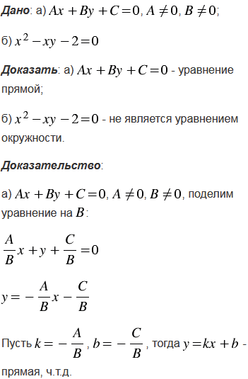а) уравнение Аx + By + C = 0, где А и В одновременно не равны нулю, является уравнением прямой;