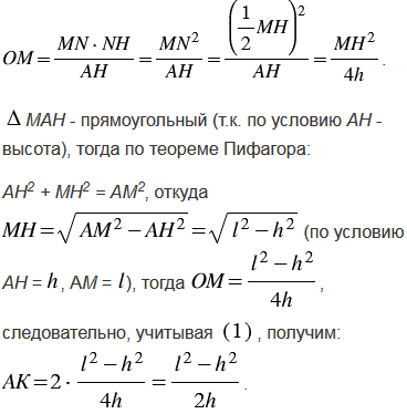 , биссектриса АN. Точка N середина отрезка МН. Найдите расстояние от вершины А до точки пересечения высот треугольника АВС.
