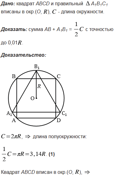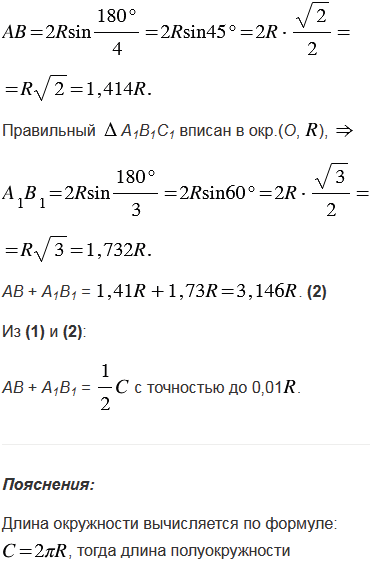 . Докажите, что сумма АВ + А1В1 равна длине полуокружности с точностью до 0,01