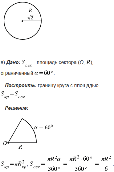 в) площади данного кругового сектора, ограниченного дугой в 600.