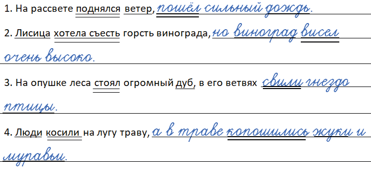 Прочитайте. Продолжите каждое простое предложение так, чтобы получилось сложное предложение. Запишите. Подчеркните основы в сложных предложениях.