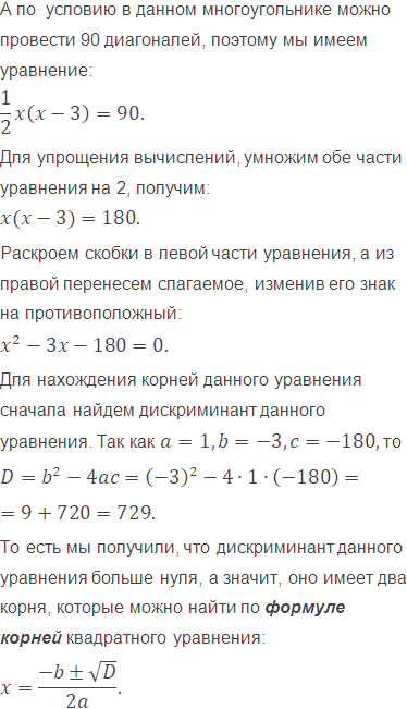 Сколько сторон у многоугольника, если в нём можно провести 90 диагоналей?