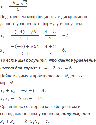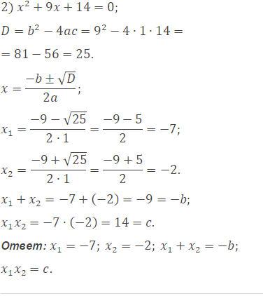 Решите уравнение, найдите сумму и произведение его корней и сравните их со вторым коэффициентом и свободным членом уравнения: