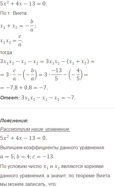Известно, что и - корни уравнения Не решая уравнение, найдите значение выражения