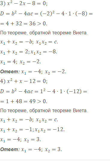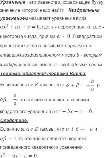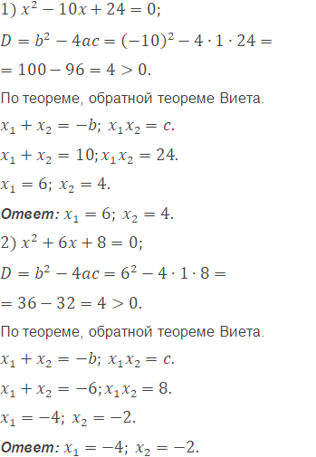 Применяя теорему, обратную теореме Виета, решите уравнение: