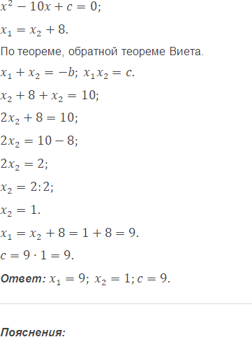 Один из корней уравнения на 8 меньше другого. Найдите значение и корни уравнения.