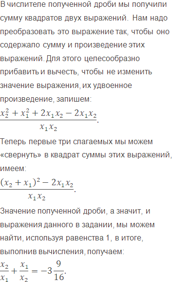 Известно, что и - корни уравнения Не решая уравнение, найдите значение выражения: