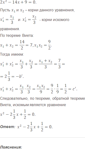 Составьте квадратное уравнение, корни которого в 3 раза меньше соответствующих корней уравнения