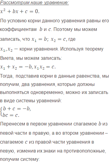 Корни уравнения равны его коэффициентам и . Найдите и .