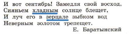 В тексте встречаются устаревшие слова: хладным (холодным), зерцале (зеркало).