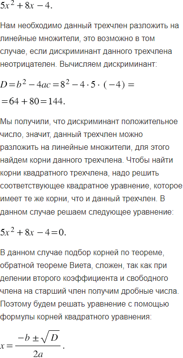 Разложите на линейные множители трехчлен: