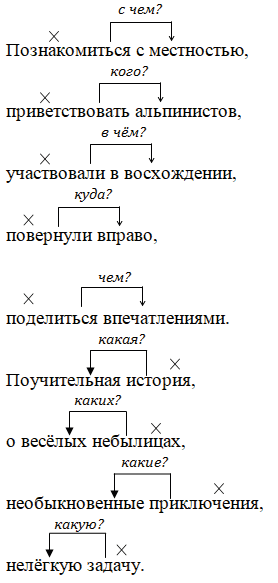 Обозначьте смысловые связи между главным и зависимым словами словосочетания.