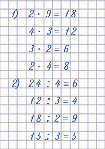 2) Найди частные: 24 : 4, 12 : 3, 18 : 2, 15 : 3.