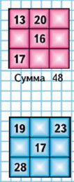 Сложи числа в каждом квадрате по строкам, по столбцам, из угла в угол. Если суммы равны, то такой квадрат называется магическим.