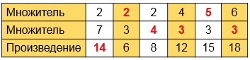 4. Вспомни, что получится, если произведение двух множителей разделить на один из них, и заполни таблицу.