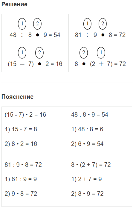 8 • 2 : 4 9 • 3 + 7 81 : 9 • 8 (15 - 7) • 2