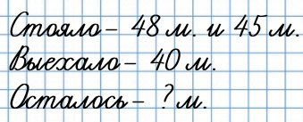 4. В гараже стояло 48 легковых машин и 45 грузовых. Сколько машин осталось в гараже, когда выехало 40 машин?