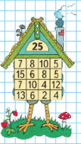 12 + 8 + 5  = 25            15 + 6 + 4 = 25