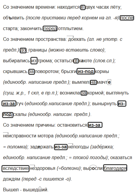 (До)ехать (до)границы, находится в двух часах лёту, выбирались из трюма, остаться в к..юте, об...явить после старта, скрывшись за поворотом, брызги из(под) кормы, вымпел на мачт.., возникла за кормой, закончить перед отплытием, остановиться из(за) (не)исправности мотора, выглянуть из (за) туч, зад..ржать из(за) (не)погоды, оказаться вследствие (не)здоровья, вынырнуть из(под) скалы, выр...сли благодаря дождям.