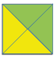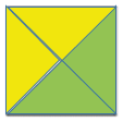 1. Рассмотри чертёж. Начерти в тетради такой же квадрат. Закрась все треугольники в 2 цвета: зелёный и жёлтый. Выполни это по-разному. Найди 6 решений.