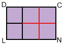 В прямоугольнике LDCN по длине уложилось 3 квадрата площадью 1 см2, а по ширине 2 квадрата площадью 1 см2. Значит, площадь прямоугольника LDCN: