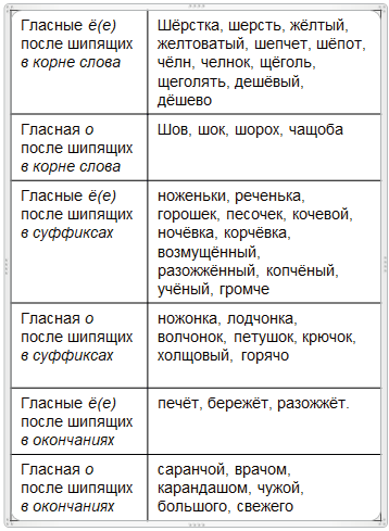 Спишите, обозначая те морфемы, в которых после шипящих должна быть буква о или ё(е). Составьте таблицу на основе приведённых примеров, при необходимости дополните её своими примерами. Сделайте выводы о правописании о - ё(е) после шипящих: 1) в корне; 2) в суффиксе; 3) в окончании. Послушайте друг друга, обменяйтесь мнениями.