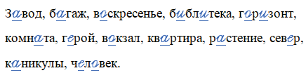 З_вод, б_гаж, в_скресенье, б_бл__тека, г_р_зонт, комн_та, г_рой, в_кзал, кв_ртира, р_стение, сев_р, к_никулы, ч_л_век, т_перь, п_н_дельник, ш_фёр.