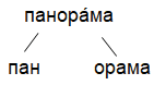 В слово панорама входят два греческих элемента: пан - "всё" и -орама - "вид, зрелище".