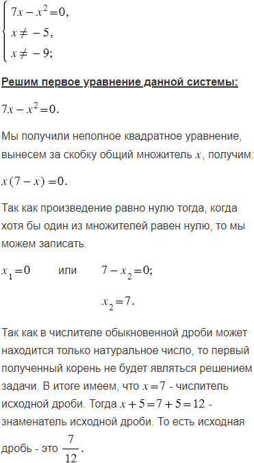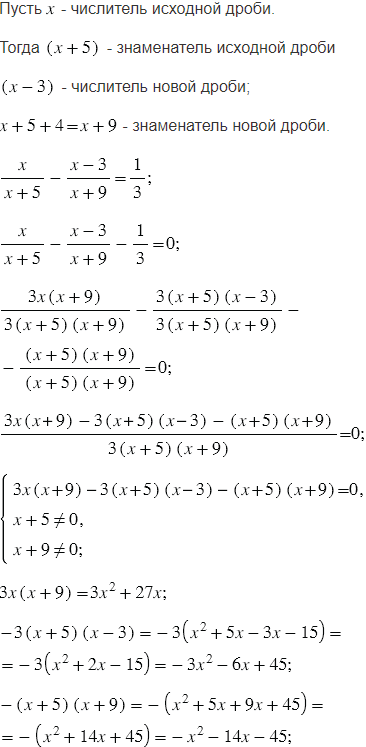 Числитель обыкновенной дроби на 5 меньше ее знаменателя. Если числитель этой дроби уменьшить на 3, а знаменатель увеличить на 4, то полученная дробь будет на