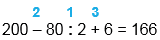 1) 80 : 2 = 40 2) 200 - 40 = 160 3) 160 + 6 = 166 |