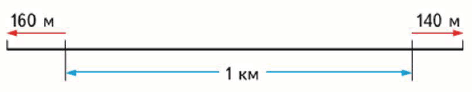 2) От двух остановок, расстояние между которыми 1 км, отошли два пешехода в противоположных направлениях. Один из них прошёл 140 м, а другой - 160 м. Каким стало расстояние между пешеходами?