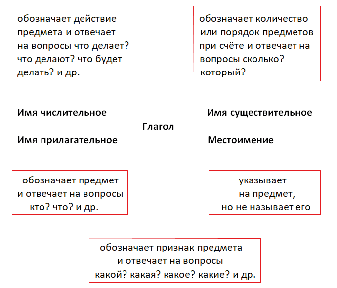 Прочитайте. Соедините линией названия частей речи и их определения.