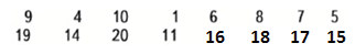 20. Как получить каждое число нижнего ряда из числа, записанного над ним в верхнем ряду? Продолжи нижний ряд.